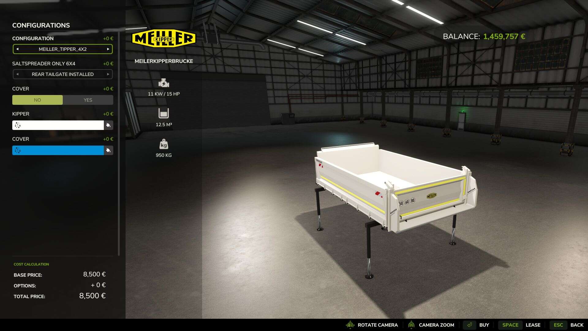 4×2 and 6×4 Meiller swap body fits all trucks with fith wheel. rear tailgate can be removed for attaching saltspreader (still WIP) Sideboards can be opened with IC or X.