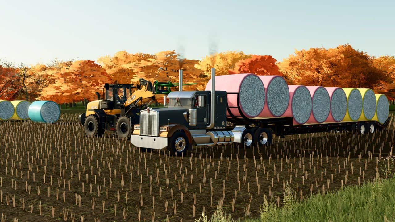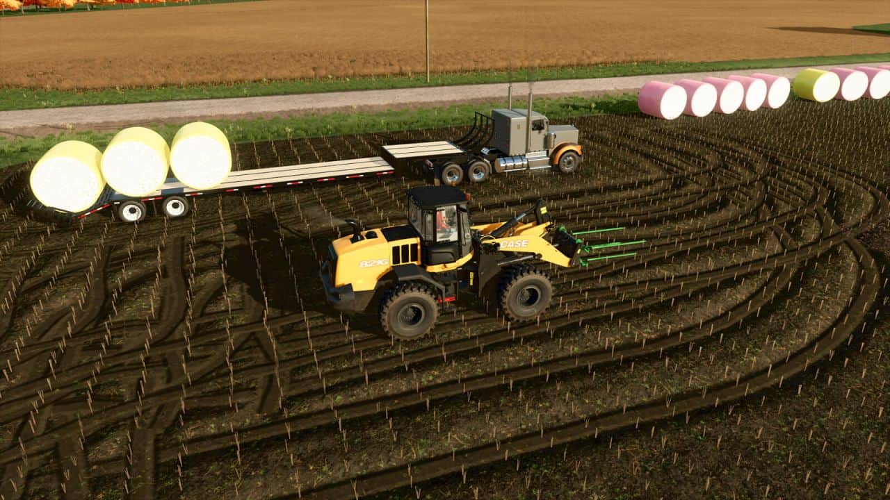 This trailer is designed to be loaded by wheel loaders and telehandlers using large bale spears such as my Round Cotton Module Spear For Wheel Loaders mod (available on modhub), which goes well with this mod.