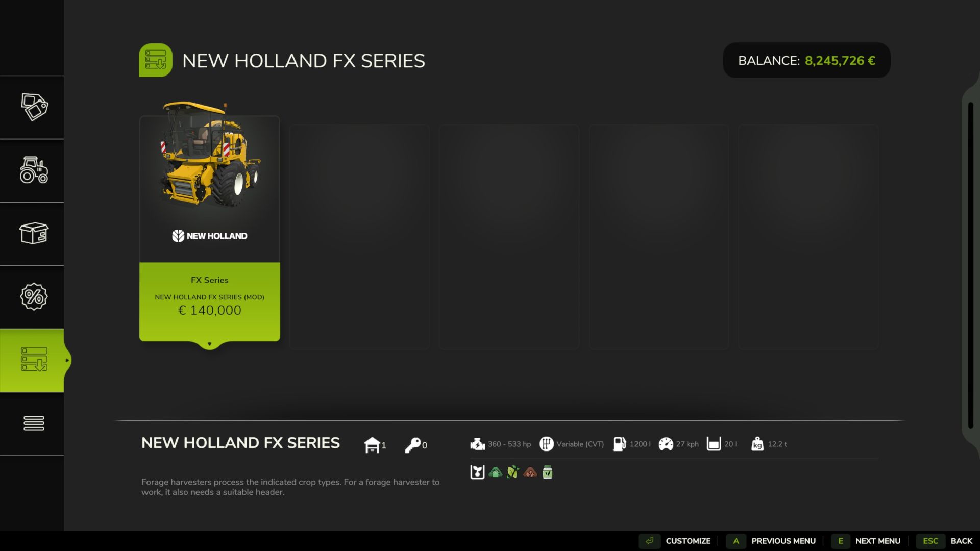 New Holland FX US v1.0 FS25 Mods | 30 Mar, 2026 New Holland FX US v1.0 A beautiful US Version of the New Holland FX ! no this is not a leaked version of CM2’s simple edit to make it more US – Price : 140.000€ – Power : 360 – 533hp – Top speed : 27 km/h Author: simple B. farms This content was uploaded by our website visitors. If you notice any errors, please let us know.