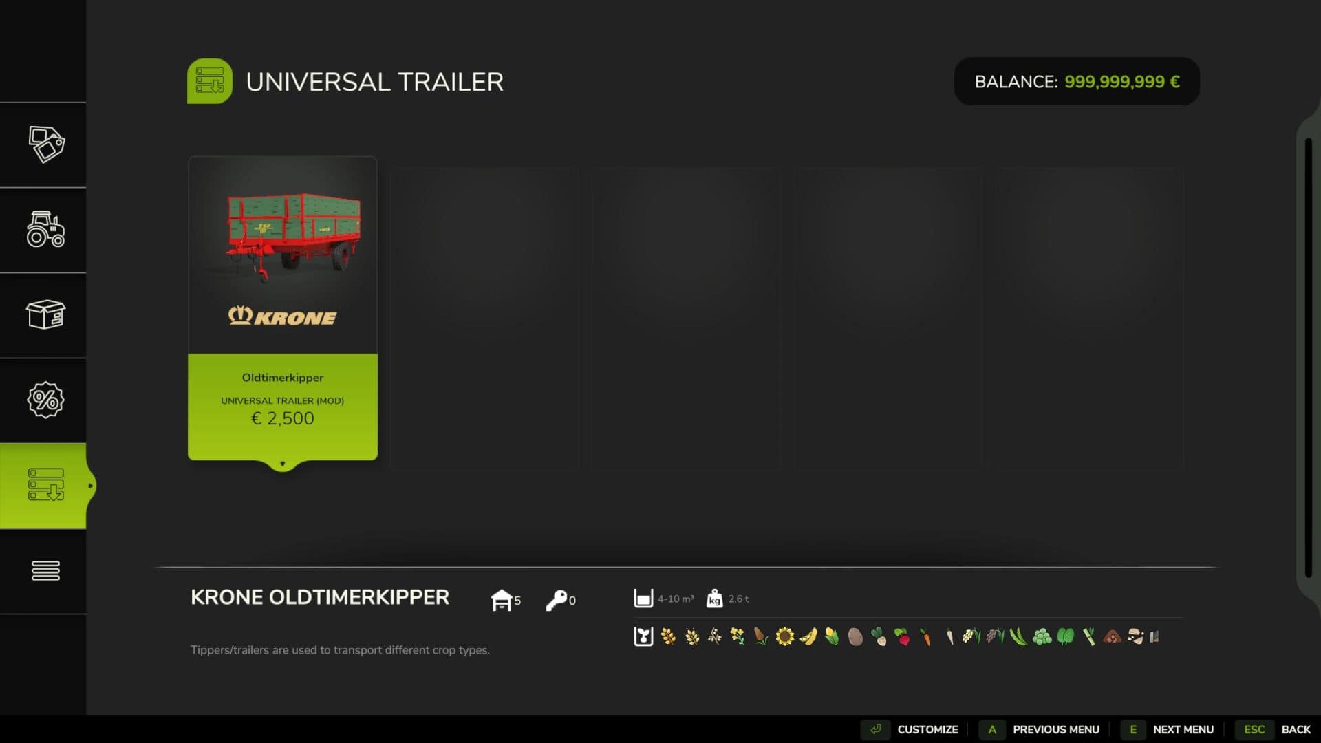 – Standard, Additional Sides, Silage, Low Loader, Bale Wagon