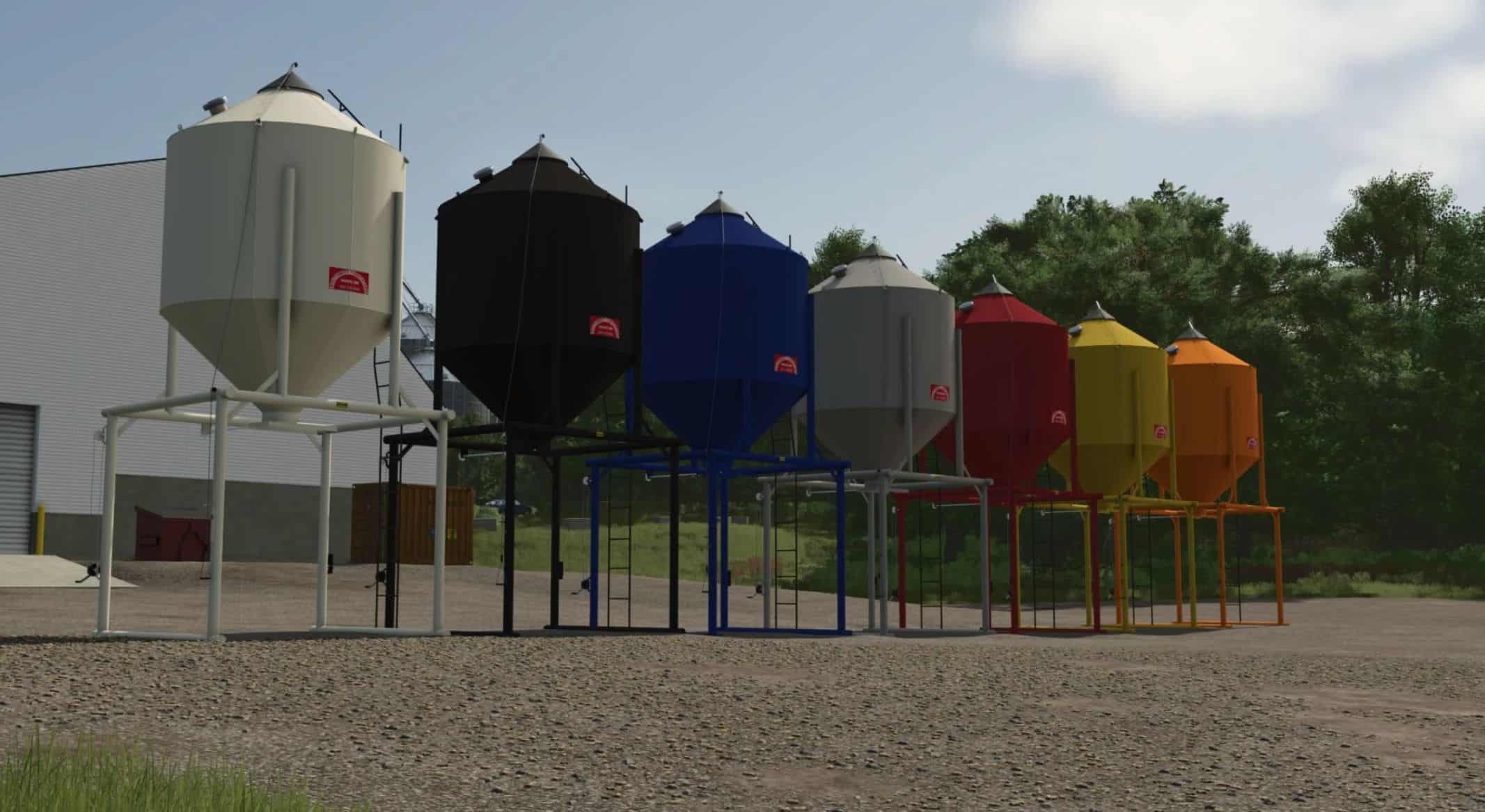 This feed bin is inspired by a 15-ton bin made in Oklahoma. It features a few different color choices, animated top lid and bottom gate, dynamic fill plane visible through the sight windows by the ladder, and some really cool little details. This is another one that I had a ton of fun modelling and in-gaming. Please enjoy and report any issues in the comments below for resolution. Take care!