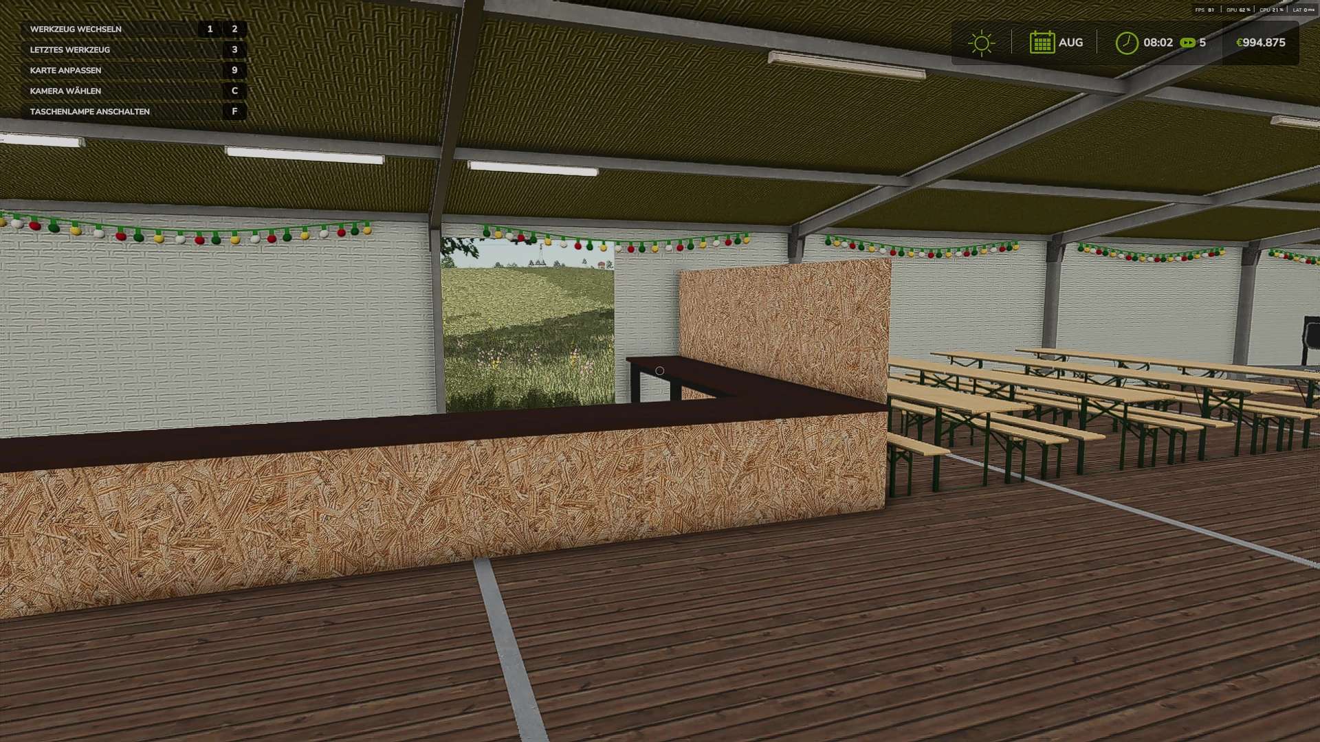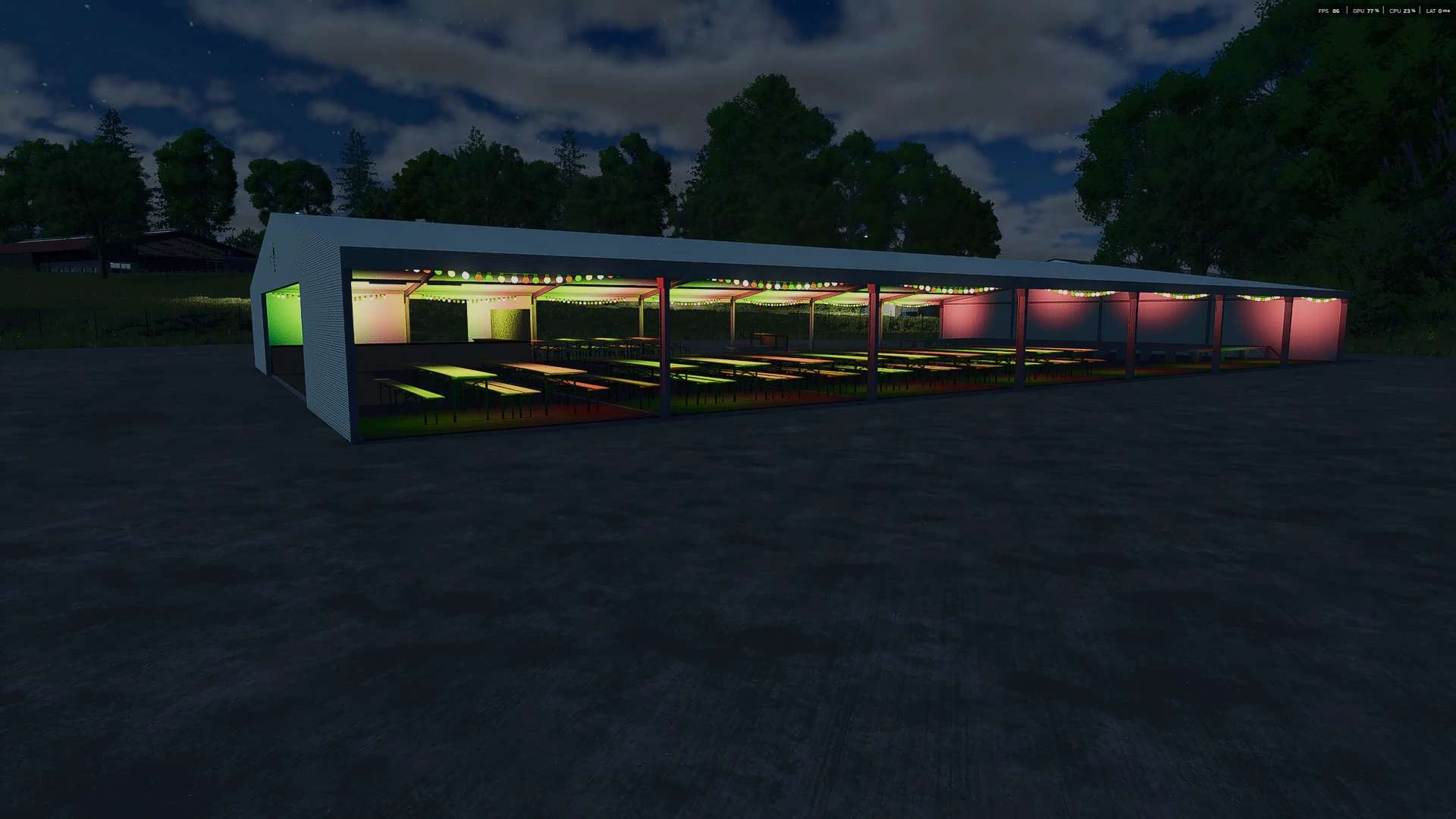 Party Tent v1.0 FS25 Mods | 25 Dec, 2025 Party Tent v1.0 A marquee perfect for roleplay projects Marquee Price: €10,000 Multiplayer: Yes Shop: Decorations – Miscellaneous Features: Fairy lights Bar Stage with FOH position Beer garden furniture Removable tarpaulins Author: Sebimodding This content was uploaded by our website visitors. If you notice any errors, please let us know.