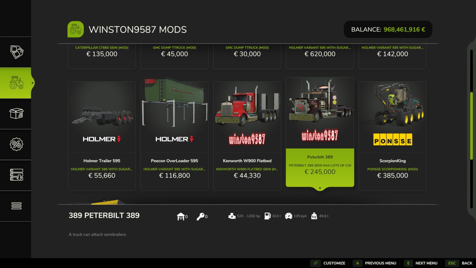 Peterbilt 389 v1.0 FS25 Mods | 14 Apr, 2026 Peterbilt 389 v1.0 The Peterbilt 389 is the perfect long-hauler for your company, available in a wide range of wraps to better represent who you’re hauling for ! – Price : 245.000€ – Power : 520 – 1200hp – Top speed : 105 km/h Author: winston9587 This content was uploaded by our website visitors. If you notice any errors, please let us know.