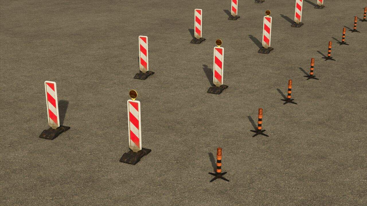 A set of signs for your construction sites or work on the farm. For use with the Construction tool. The placement uses the system of fences. Click to define a starting point, then an ending point, the game takes care of placing the signs in a linear fashion.