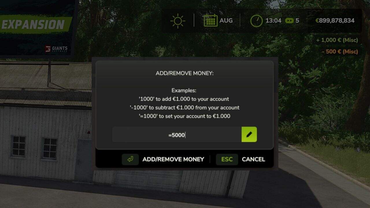– Add/remove money to your farm