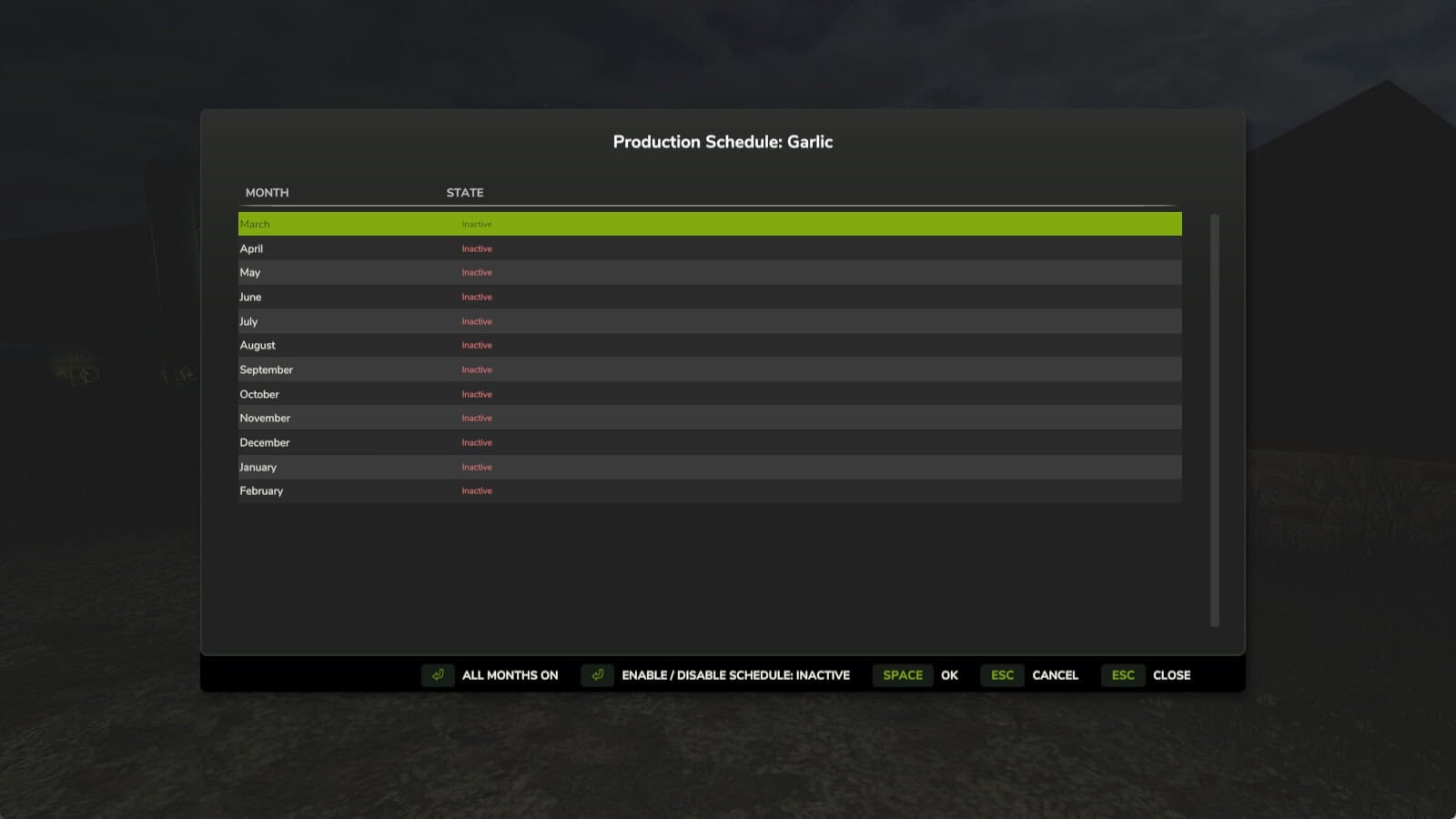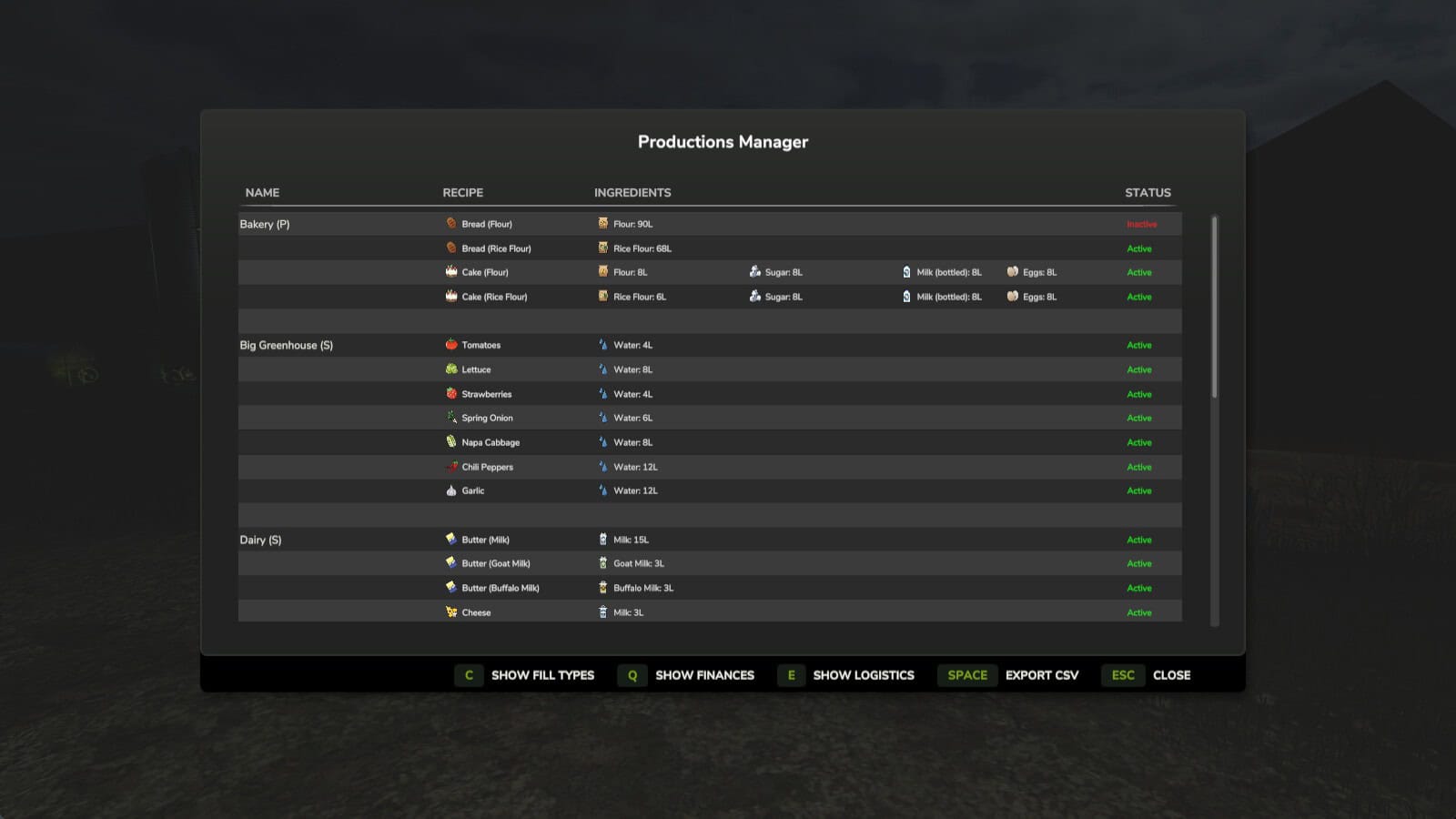 – Production Scheduling: Set active months per recipe — productions outside their scheduled months are automatically paused and resumed.