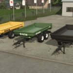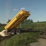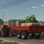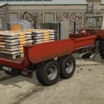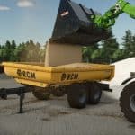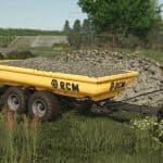 Excavator trailer of the Polish brand RCM PK1. The trailer performs the function of a dump truck. It is designed specifically for excavators, but can also be used for transporting with an ordinary tractor. The rear hatch opens in two ways – as a classic tipper, or as a hatch-door, which allows even more convenient unloading, loading, as well as transporting long elements.