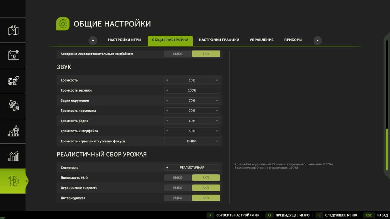 – Realistic: For simulation fans. Speed is strictly limited by the combine’s physical capacity.