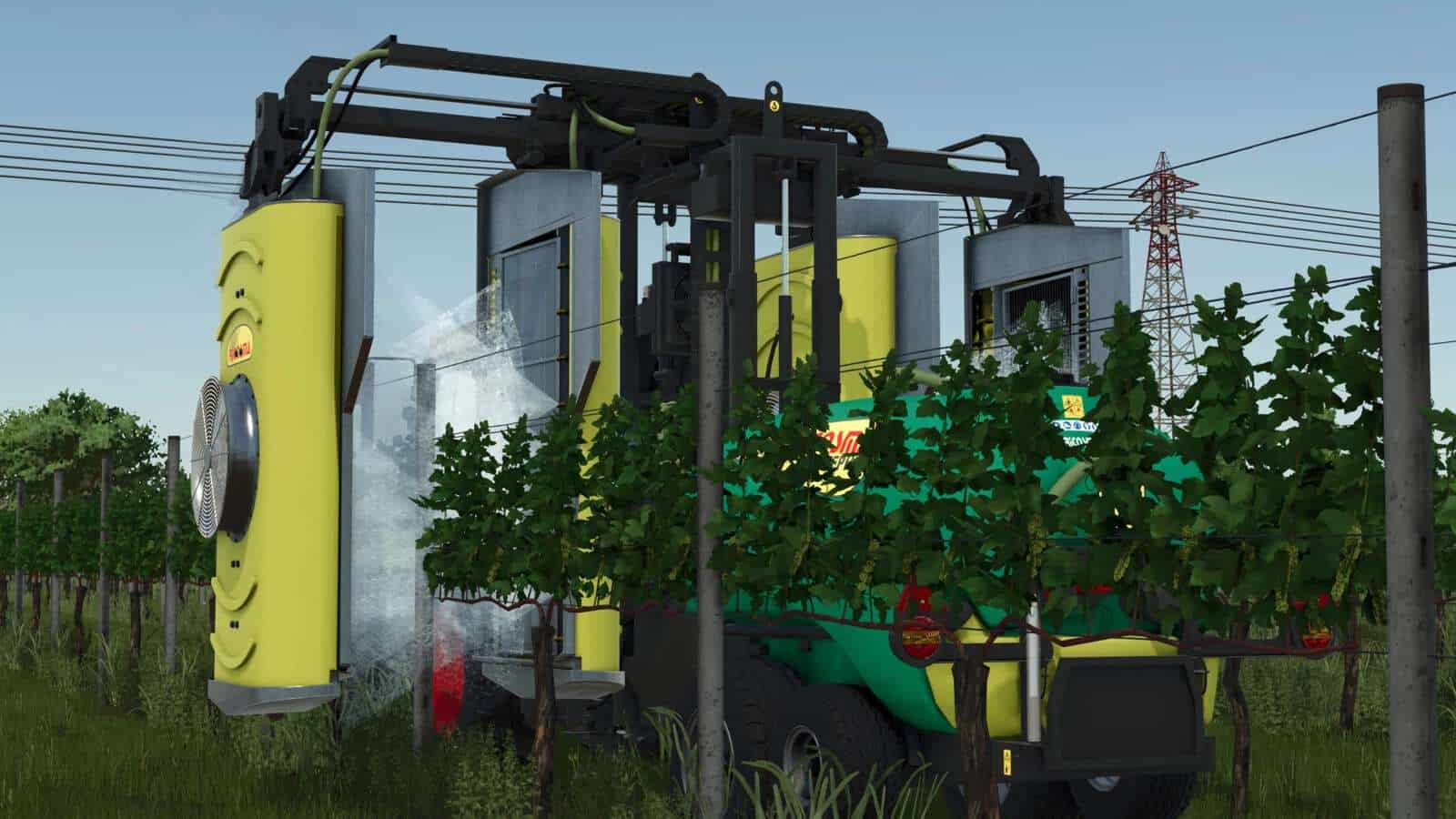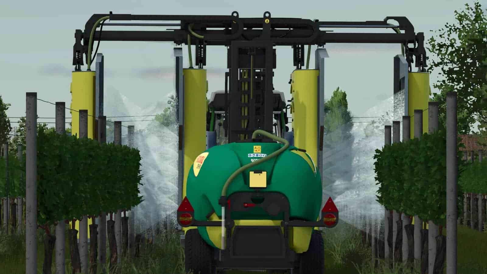 ZEPHIR machine created for treatments on vineyards that allows to recover the product that does not reach the part to be treated, allows to work two complete rows for each transit with widths of minimum 2 mt and maximum 3 mt.