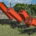 Set of trailers from the Spanish brand RINOAGRO, specialized in the online sale of its machines. This pack is made up of trailers with a monocoque box, ideal for transporting bulk loads, thanks to its reinforced box and its hydraulic folding rear door.