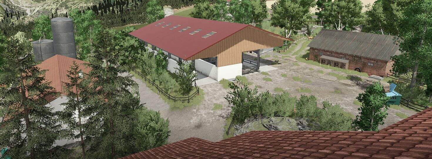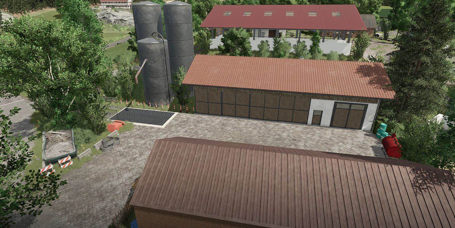 – There are two cow barns, a small pigsty, a goat barn, and two silage silos.