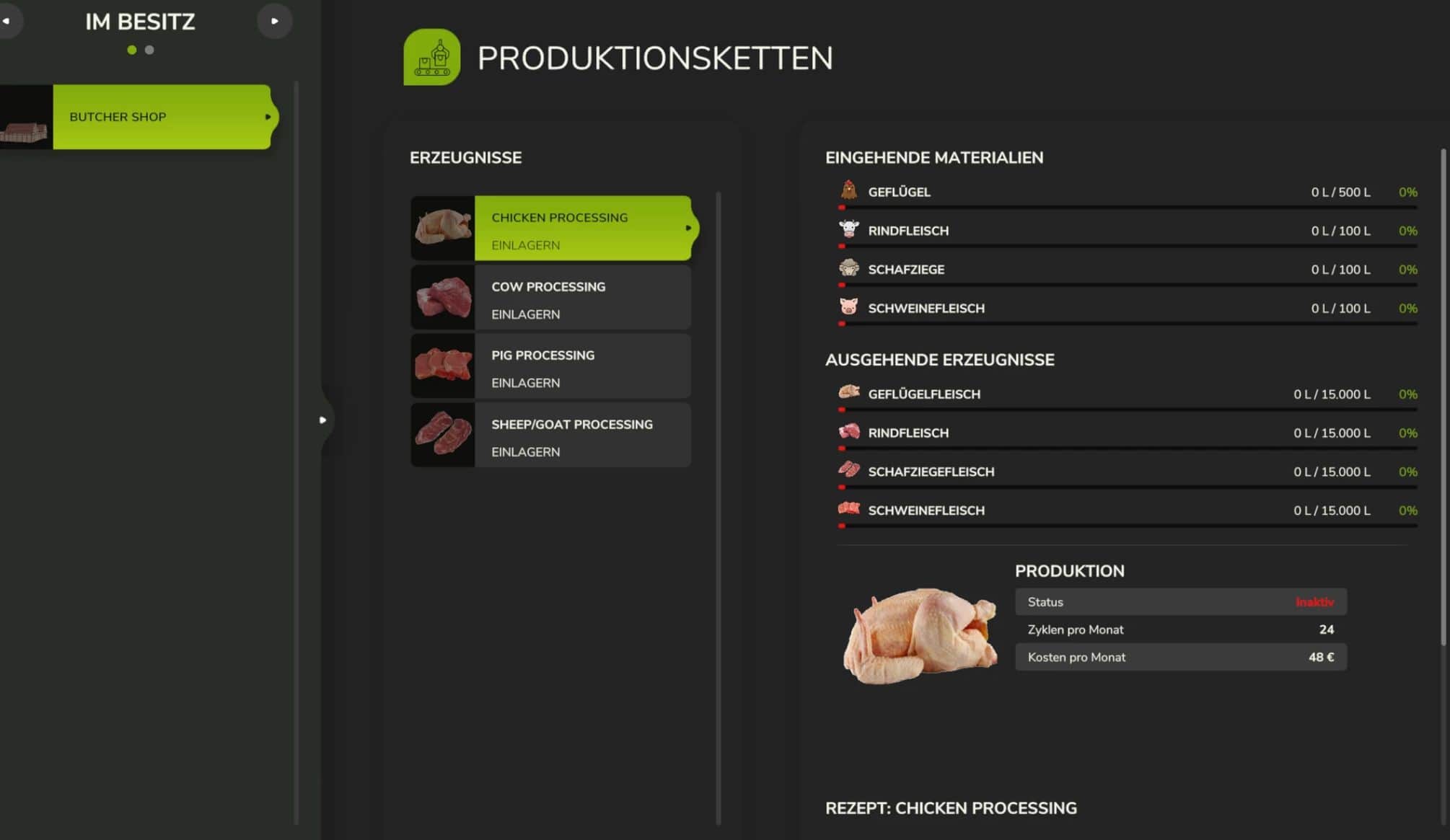 Production facility for processing livestock. In this slaughterhouse, you can profitably process your fattening cattle or surplus animals into meat.