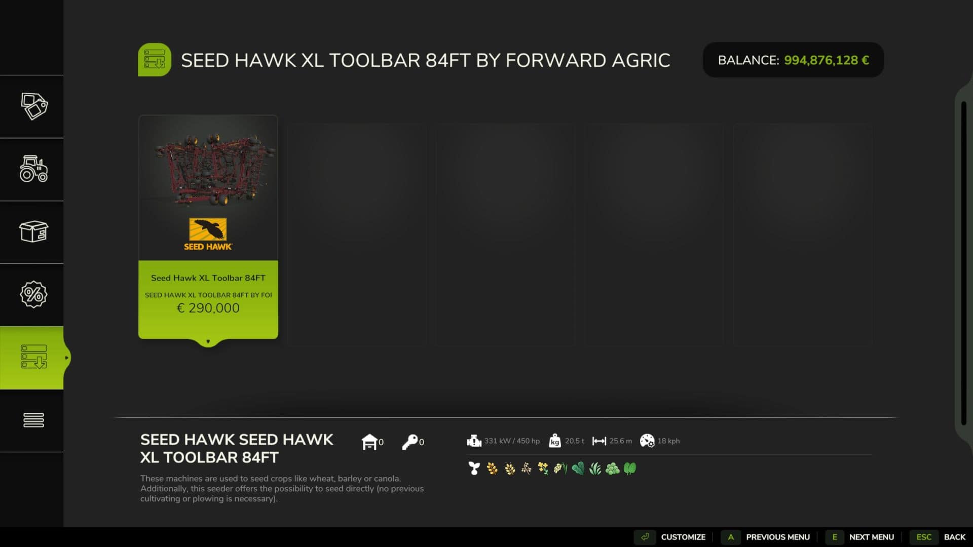 Seed Hawk XL Toolbar (84ft) with Additional Systems v1.0