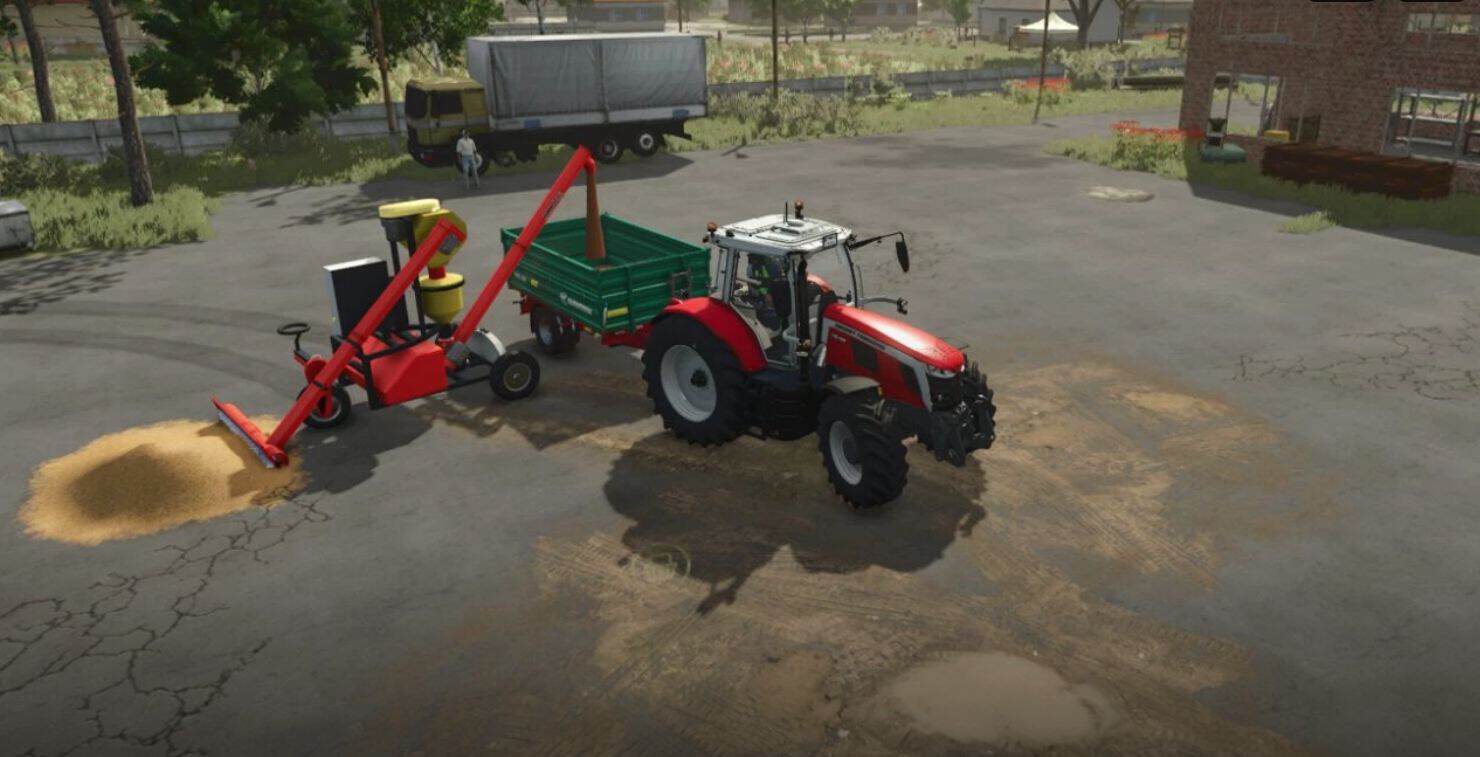 Simply pour seed treatment liquid into the mobitox-E super- and press the b button to pick up the seed from the ground. AND the trailer must be moved under the pipe and the seed will be ready, which can be used later for sowing. It is worth downloading another mod, a packaging mod to pack your seeds into a bigbag.