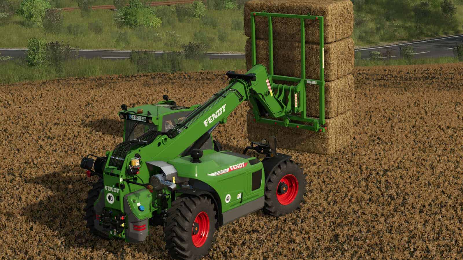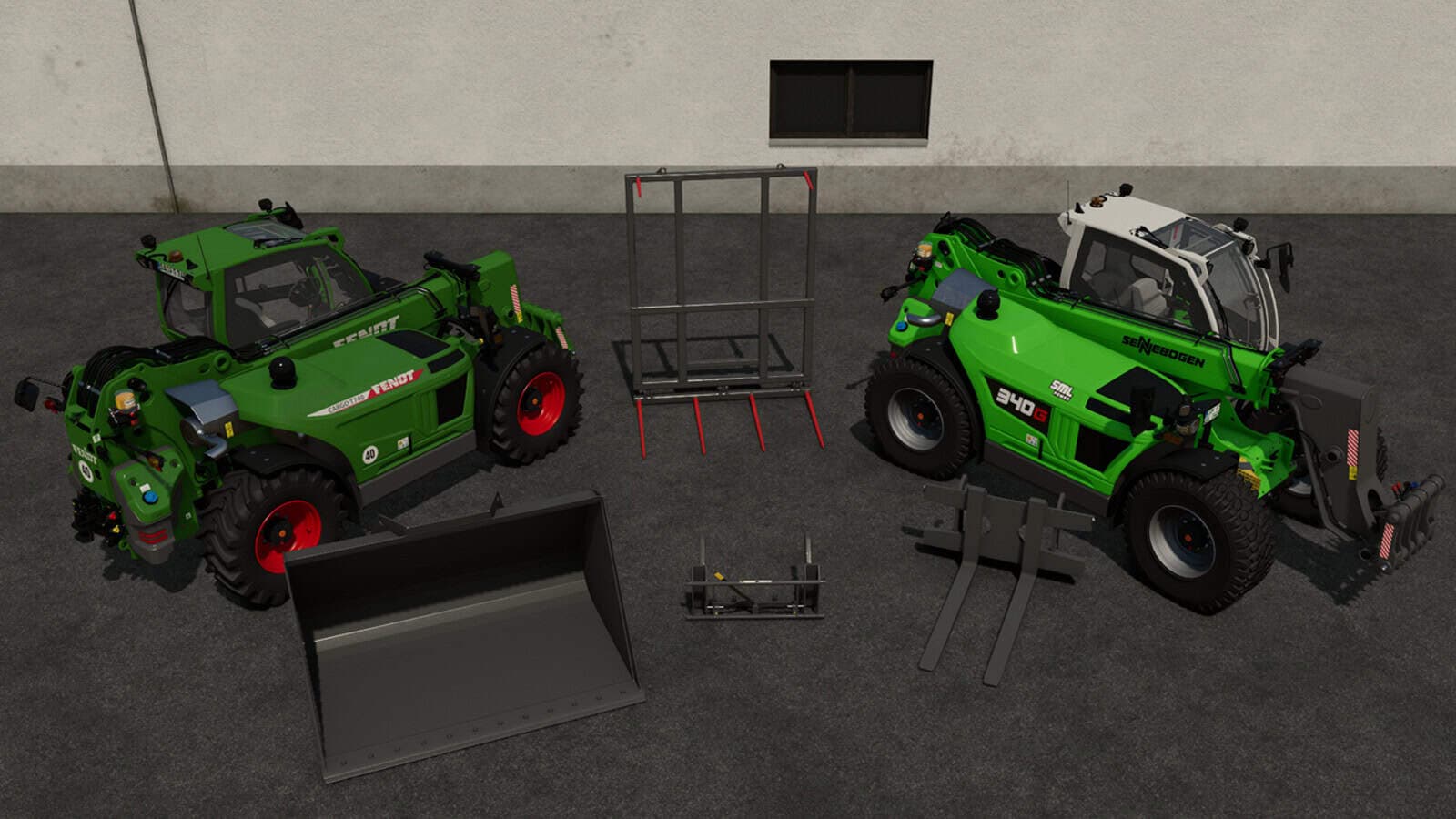 Reworked Sennebogen/Fendt telehandler with perfect fitting tools from Bressel and Lade or Fuhrmann.