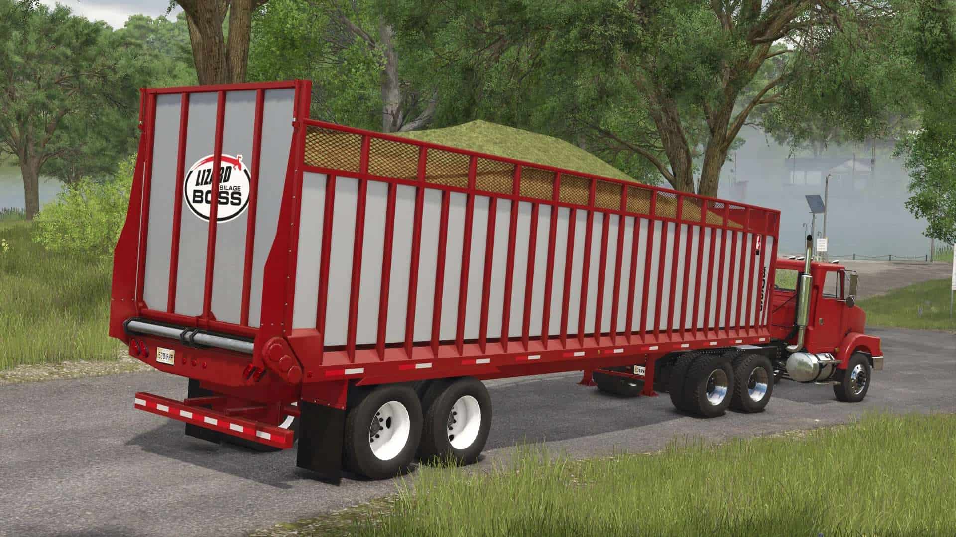 The Silage Boss is a trailer designed for handling lighter commodities like hay or chaff. Originally released back in FS17 it has been overhauled and is better than ever, ready to handle silage like a boss.