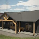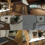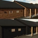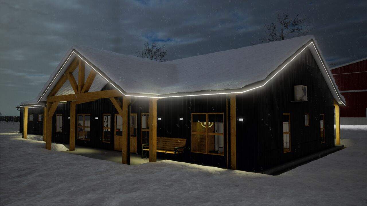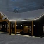 Building has garage for two cars, big living area with kitchen, two bedrooms and bathroom. Lighting inside is manual, outside nighlighting is automatic. You can choose color of walls and material – metal or wood.