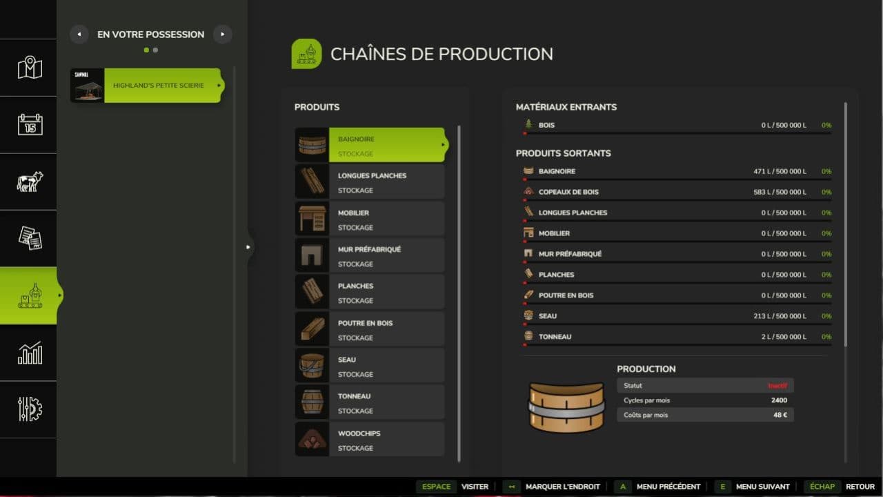 Bathtub, Furniture, Prefabricated Wall, Bucket, Barrel, Wood Shavings as well as the basic recipes Long Planks, Wooden Beam and simple planks.