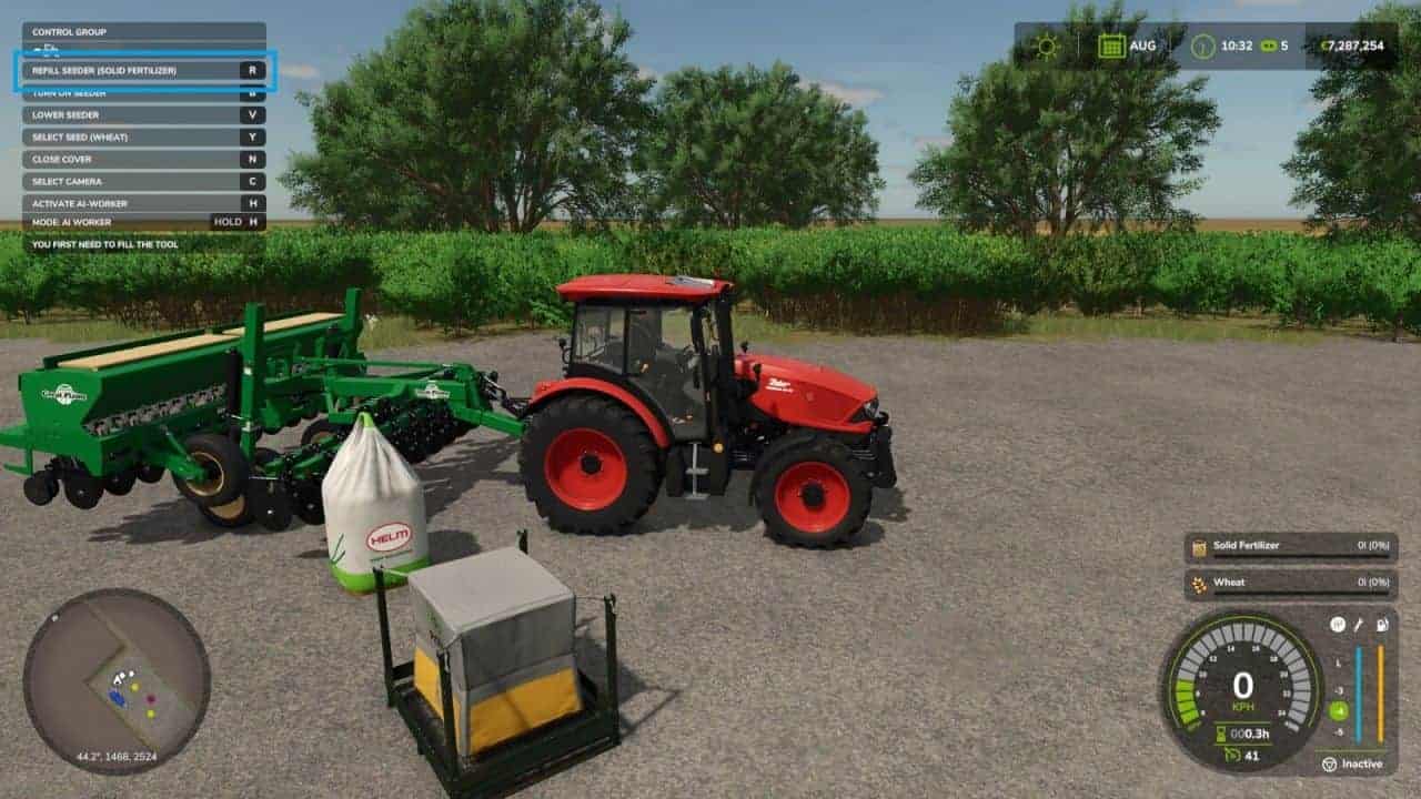 Stop guessing what you’re loading! This mod dynamically updates the “Start filling” and “Refill” prompts in your F1 menu to show the specific product name. Whether you are at a water station, a diesel pump, or parked next to a seed bag, the interface will now display exactly what is being transferred (e.g., “Start filling (Water)” or “Refill (Seeds)”). Works with map-integrated stations, buyable pallets, and big bags.