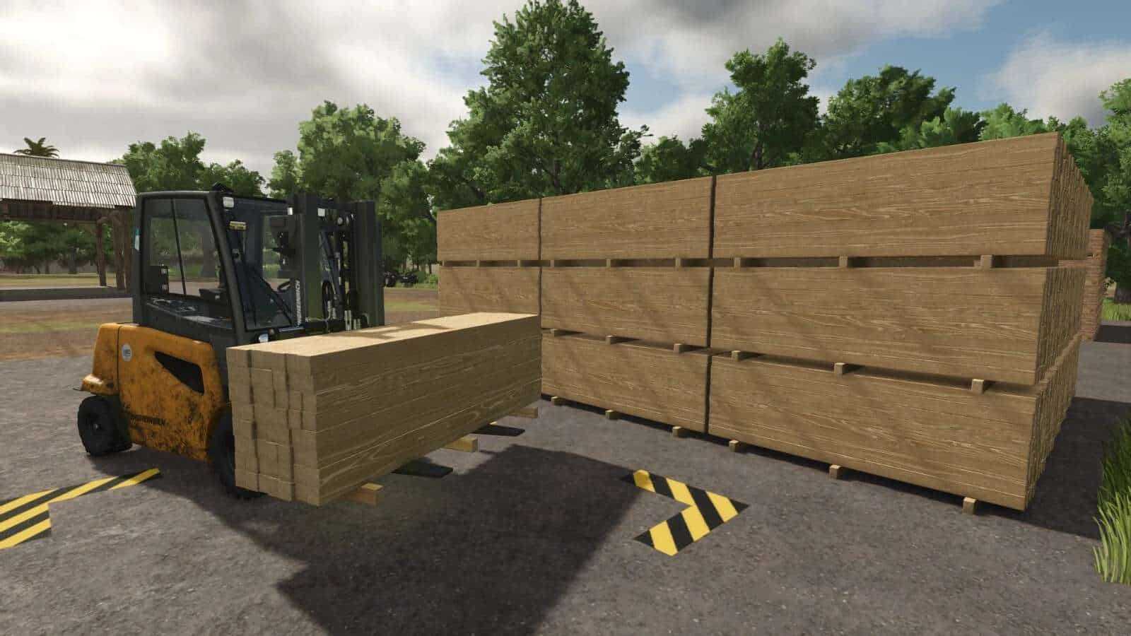 This is a mod where you can store and organize your sawmill production. We added some decorative pallets to make the visuals more appealing. Hope you enjoy it! Wishing all farmers a great game.