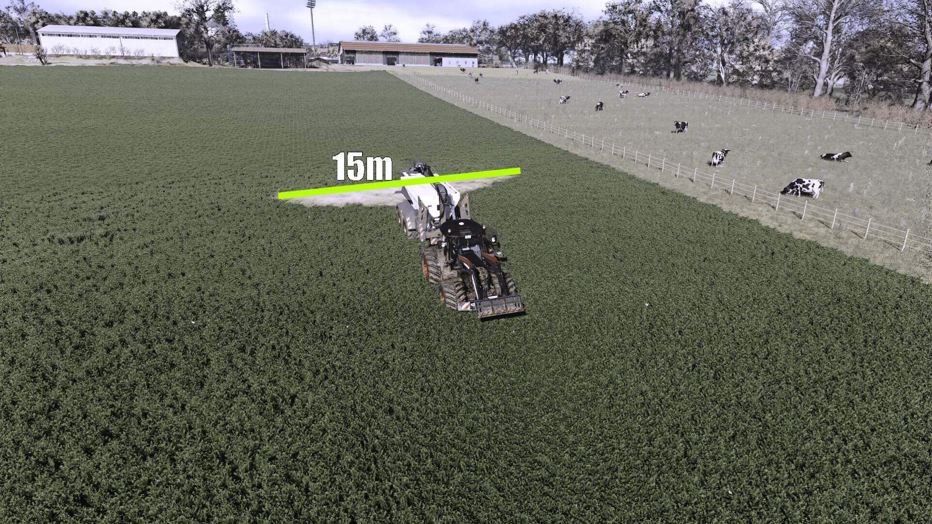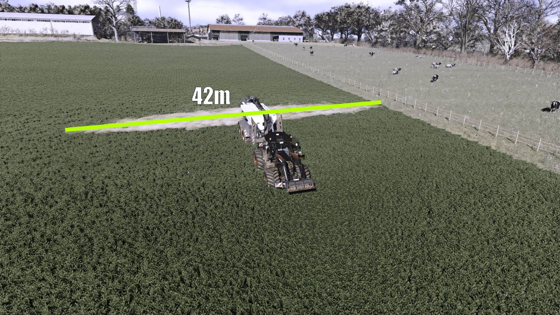 – Working width: 15m-42m (lime spreading was extended from 15m to 42m with intermediate width changes)