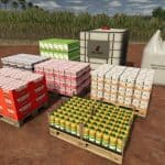 Two silos for storing sugar cane are available, as well as two silos for storing sugar beet. Of course, a sales outlet is also available. It will allow all products to be sold, including those of other mods (if they have been categorised)