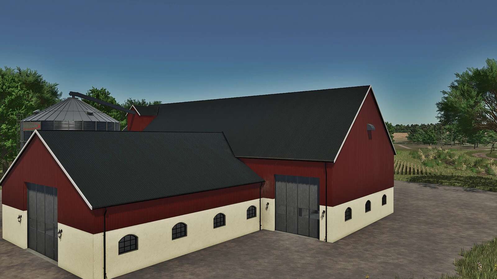 This pack includes two different buildings for grain storage. In real life the first building contains a diesel-powered dryer and the second is equipped with a dryingsilo, but they function like regular silos in the game.