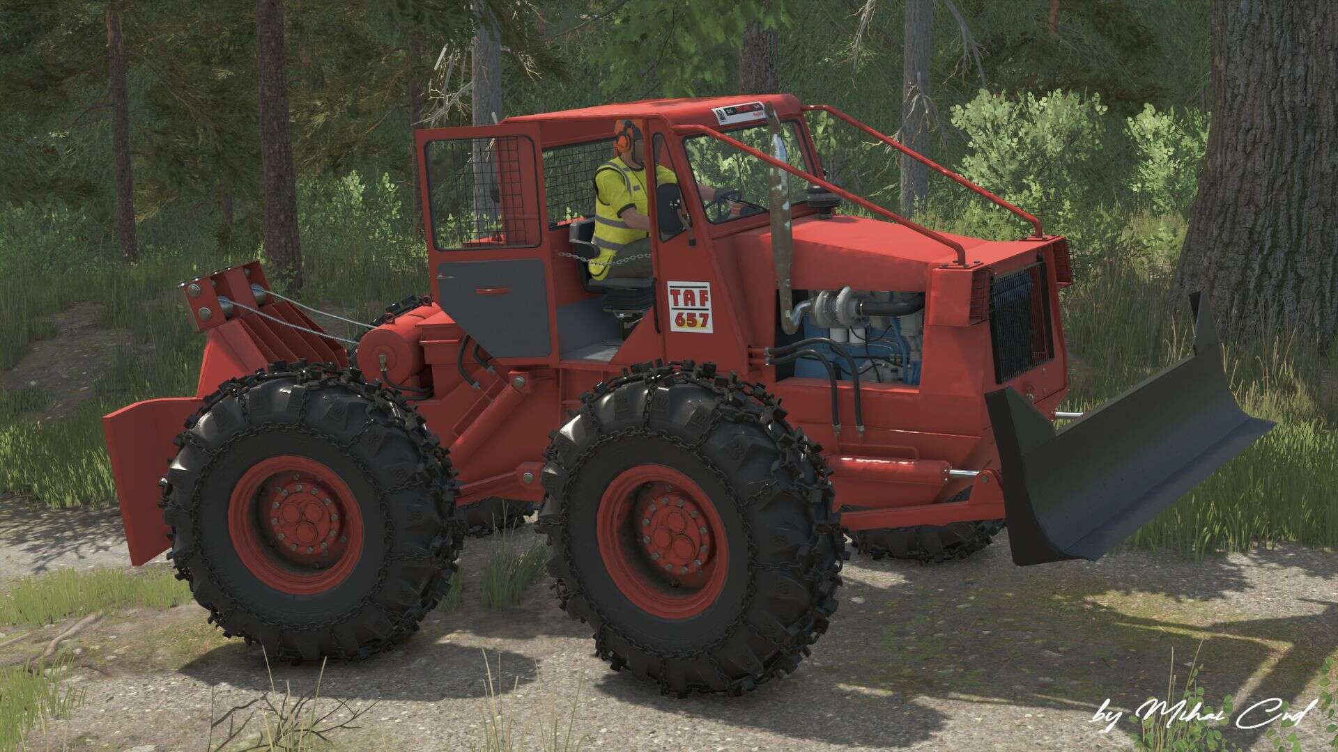 TAF 657 – IRUM SA is a heavy-duty articulated forestry tractor. The mod is converted from Farming Simulator 22 and features a reworked 3D model.