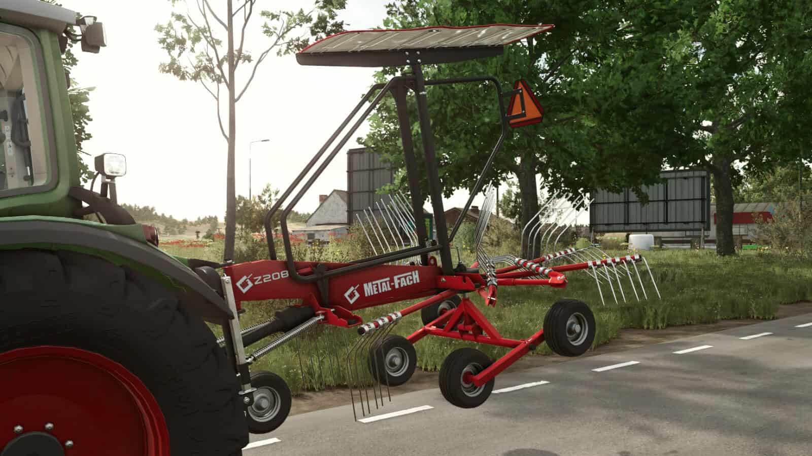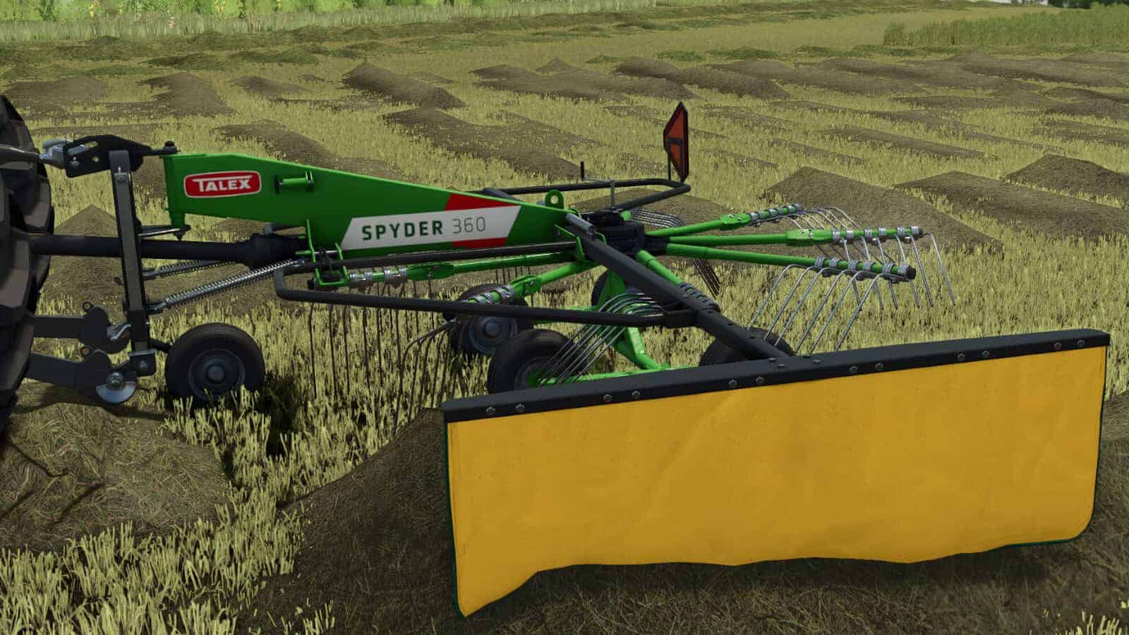 The windrower from the Polish brand Talex. Talex Spyder 360 with a working width of 3.60 m has 4 foldable arms for transport.