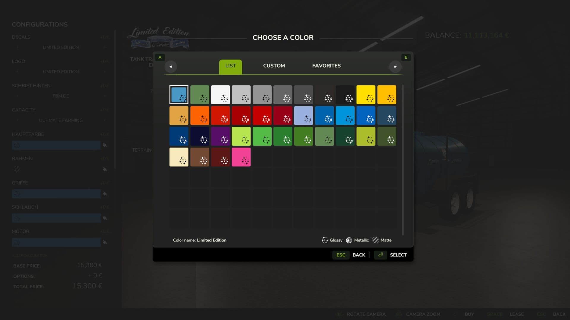 – Color selection for main color, frame, handles, hose, engine, decal, lettering, engine decal, and rim color