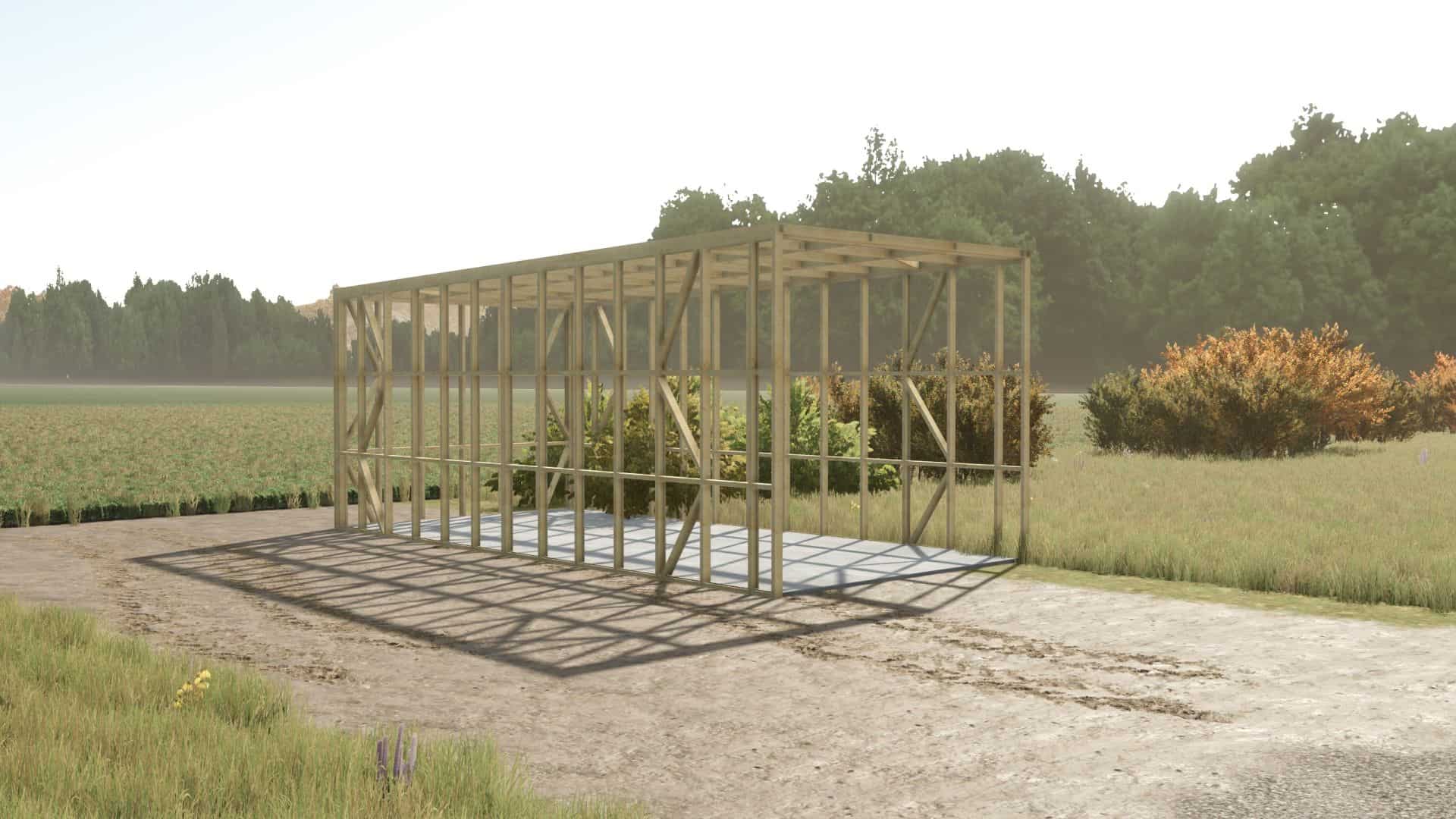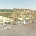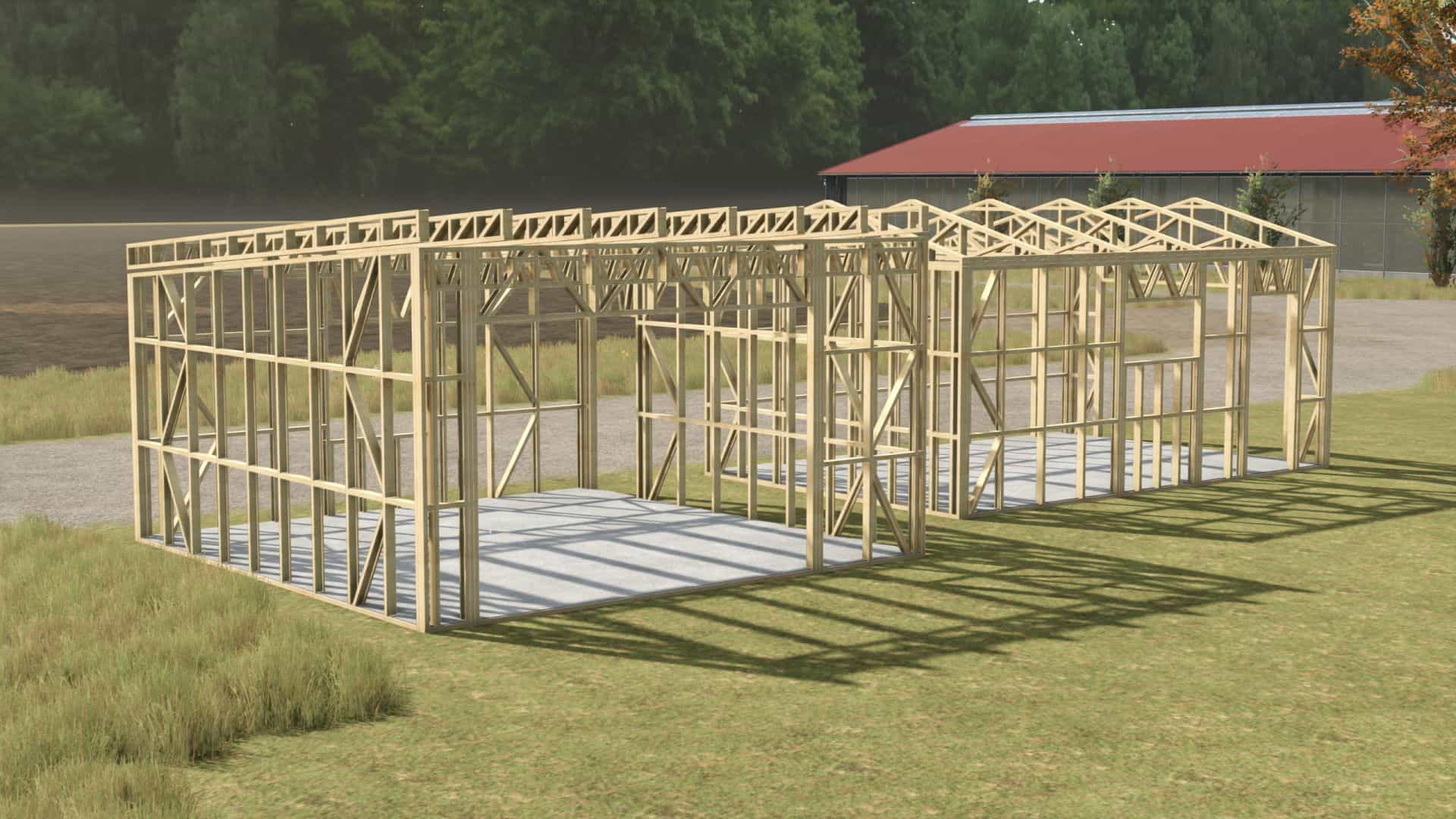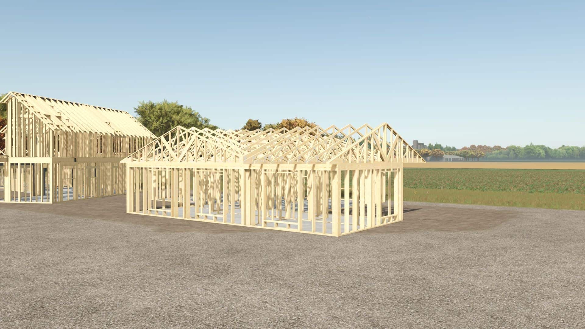 A pack of houses and garages frame, made out of timber, to create the illusion that your map is still being built.