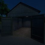 Small tin garage with lighting.