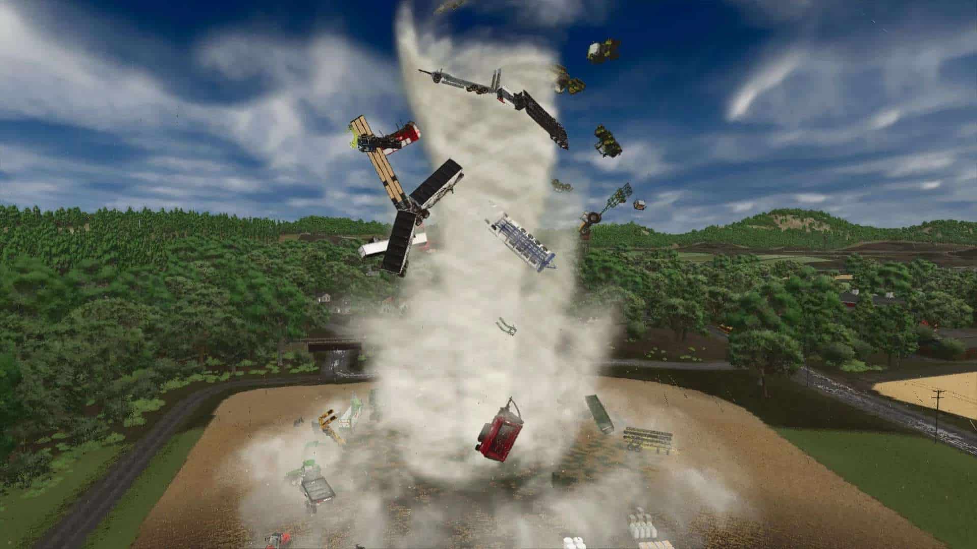 Make Tornadoes Scary Again! By default, Farming Simulator 25 tornadoes are just visual effects that pass right through your equipment. Tornado Physics changes that completely. This script mod hooks into the game engine to apply real physical forces to any vehicle caught in the storm.