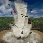 Adjust Power: Make the storm weaker or turn up the ejection force to launch tractors across the map.