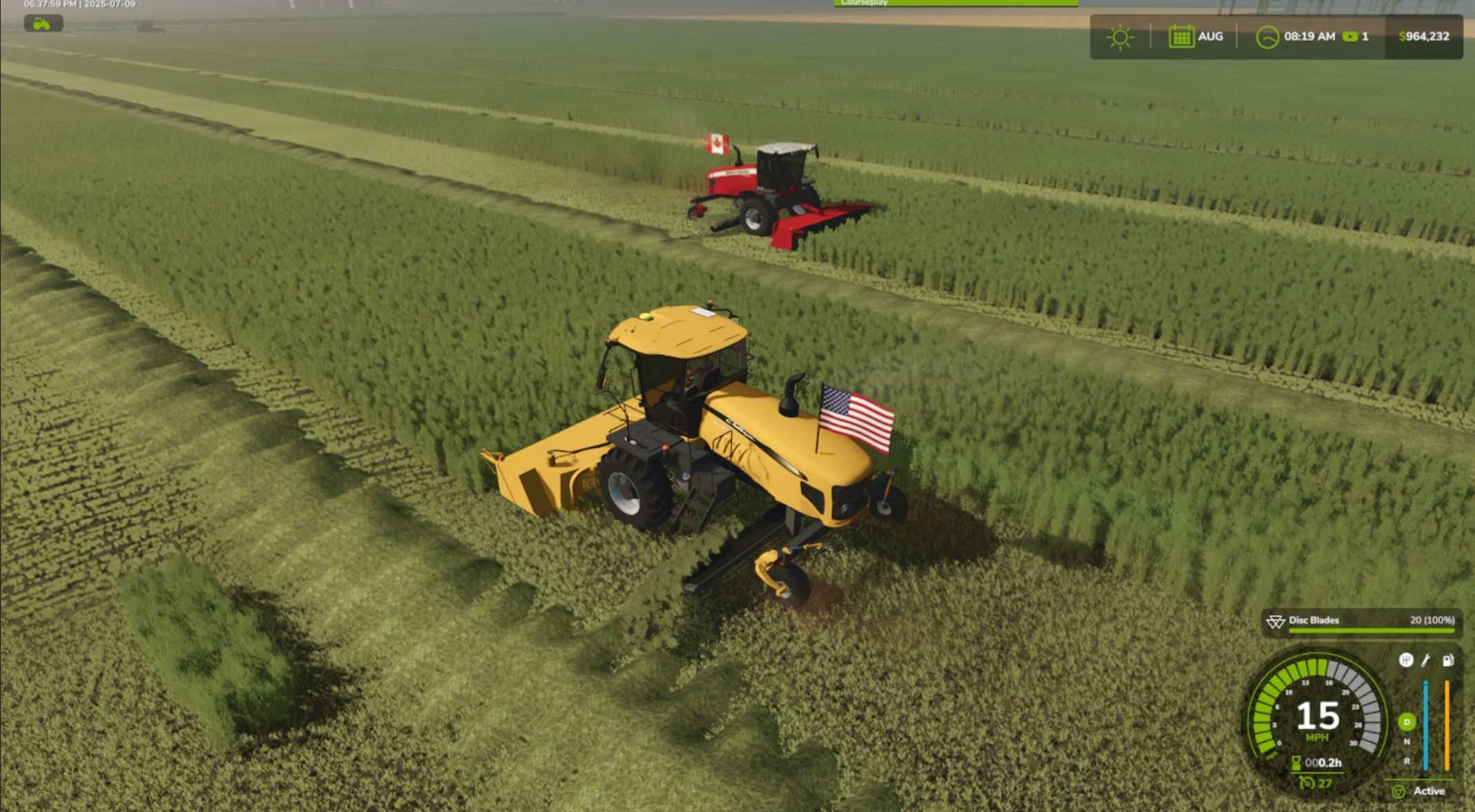 UltimateWindrowerPack_25.zip— This is the Windrower that is equipped with a side merger, I included the side merger to be on either side. This is for a game and it comes in handy having a left side option too. You can set which side you want it on or not have it at all by adjusting it in-game, right on the field when it’s turned on(see the animations). This Windrower is also the one equipped with wearable Discblades. There are 4 Windrowers in this pack 1 with 16′ mower head(2 options) and 1 with 20′ mower head. A swather version of each is also available.
