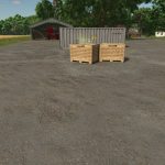 Placeable container for unloading, storing, distributing and selling bulk vegetables. Compatible with PC and consoles (crossplay).