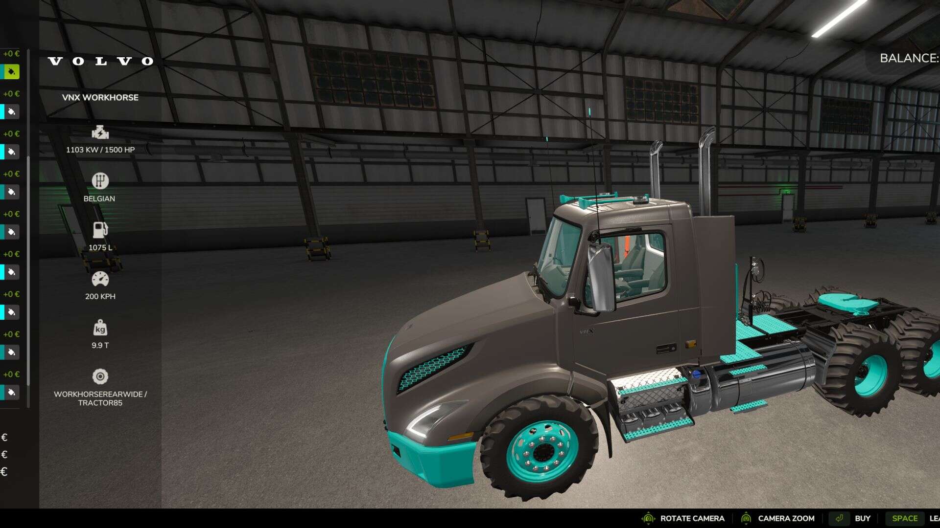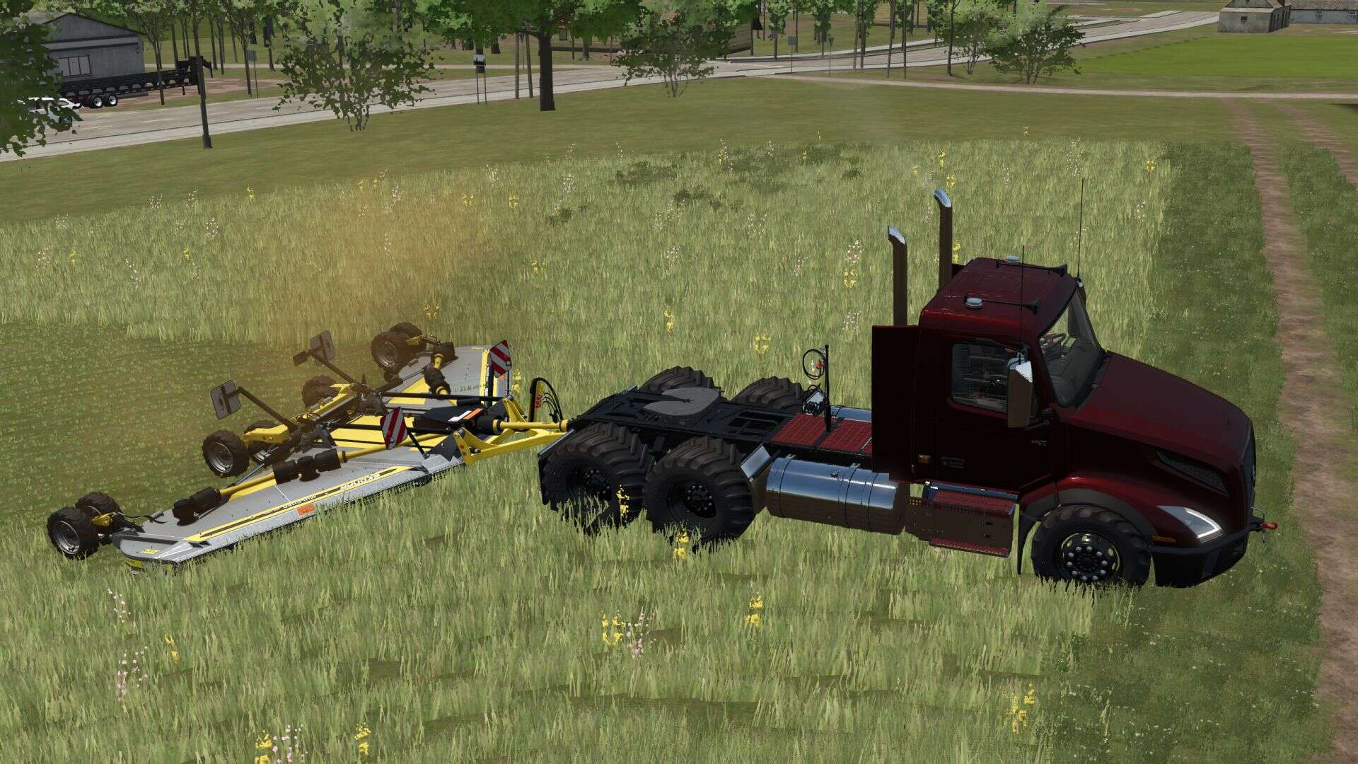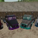 This is a Volvo VNX300 that has been upgraded into the ultimate farming semi. It features a gooseneck hitch, a rear hitch with PTO for powering tools, front forest winch, and a matching spare tire mounted to the back of the cab. You’ll find several configuration options when building your rig, including motor, tires, colors, and drivetrain.