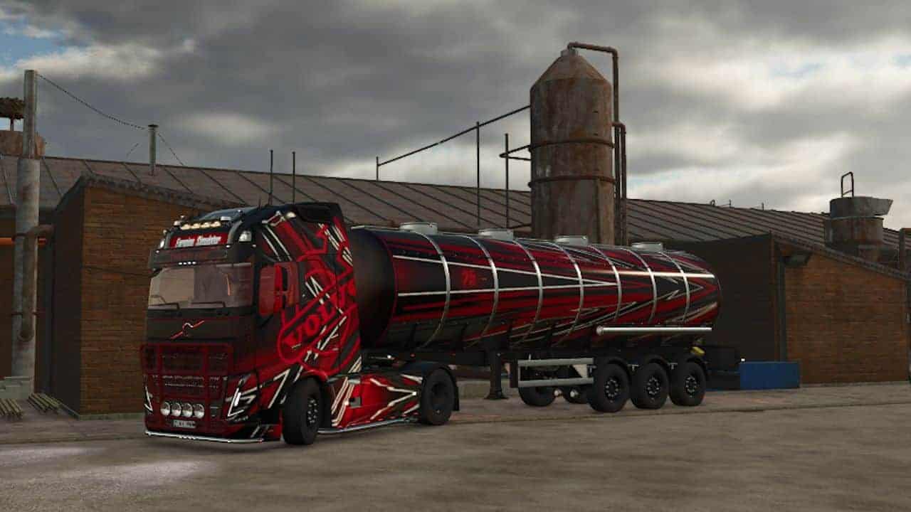 This is a Volvo FH16 Pack VOLVO FH16 4×2, KRONE PROFILINER TRAILER , MKS32 BARREL. This mod concerns the full skin of the vehicles.