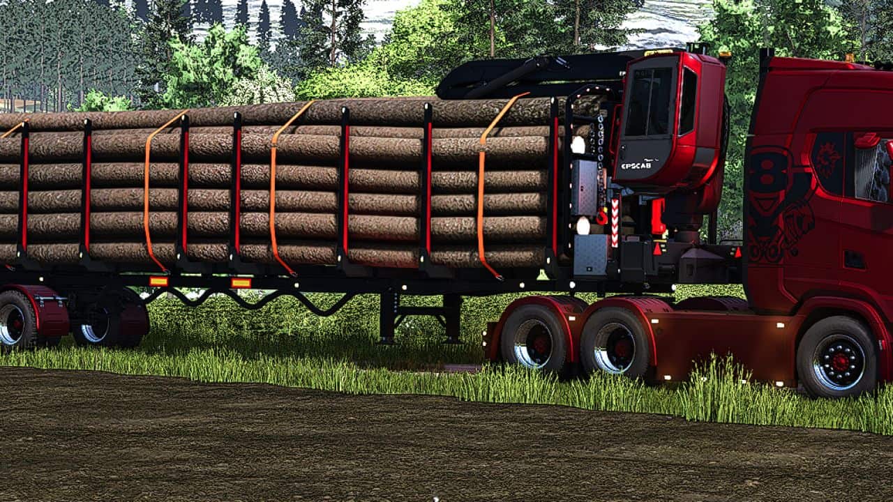 All trailers have been tested with HR Forst und Fahrzeugbau Volvo, the most suitable vehicle to use with these. Scania shown in picture is a private edit and will not be shared.