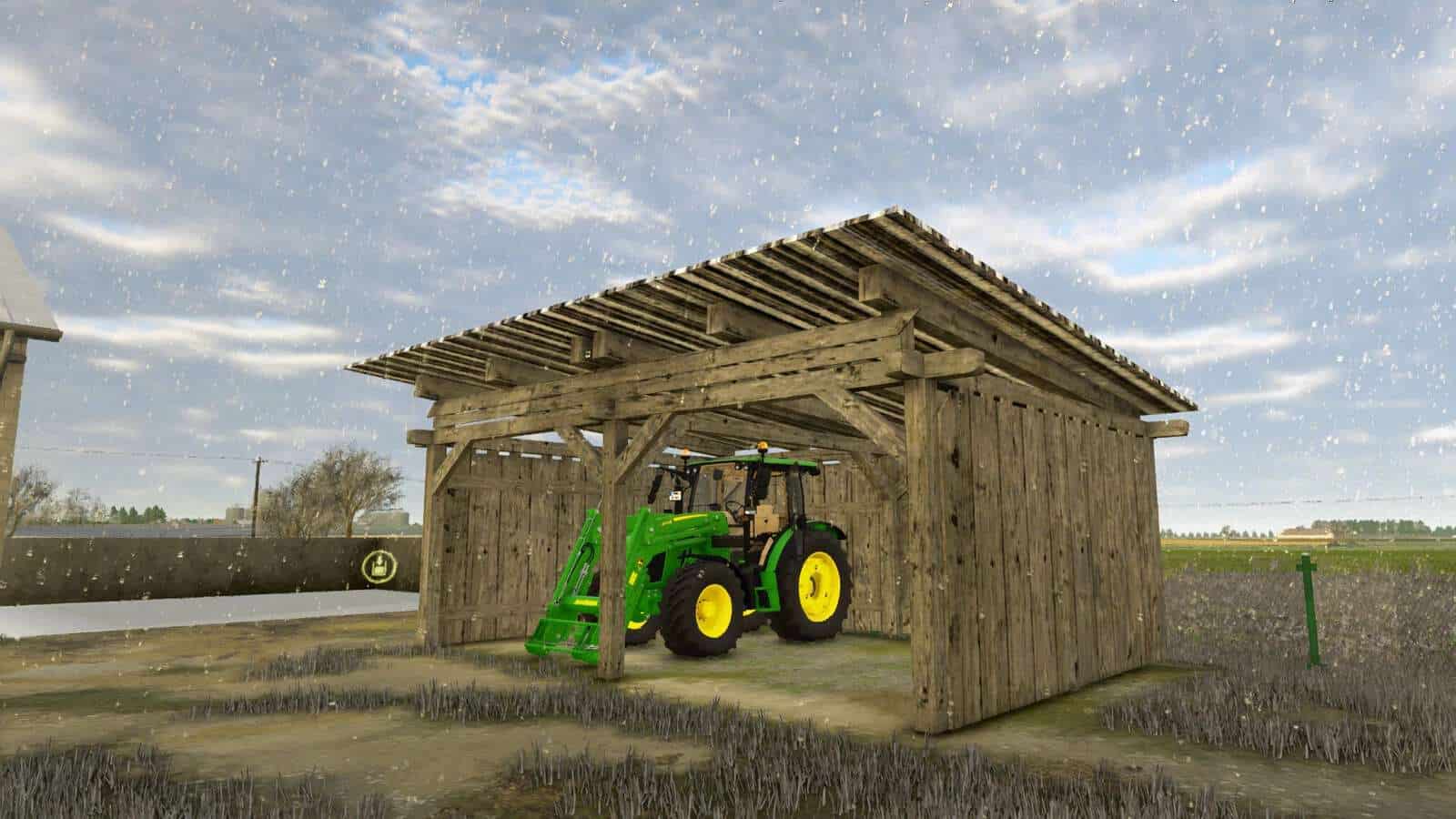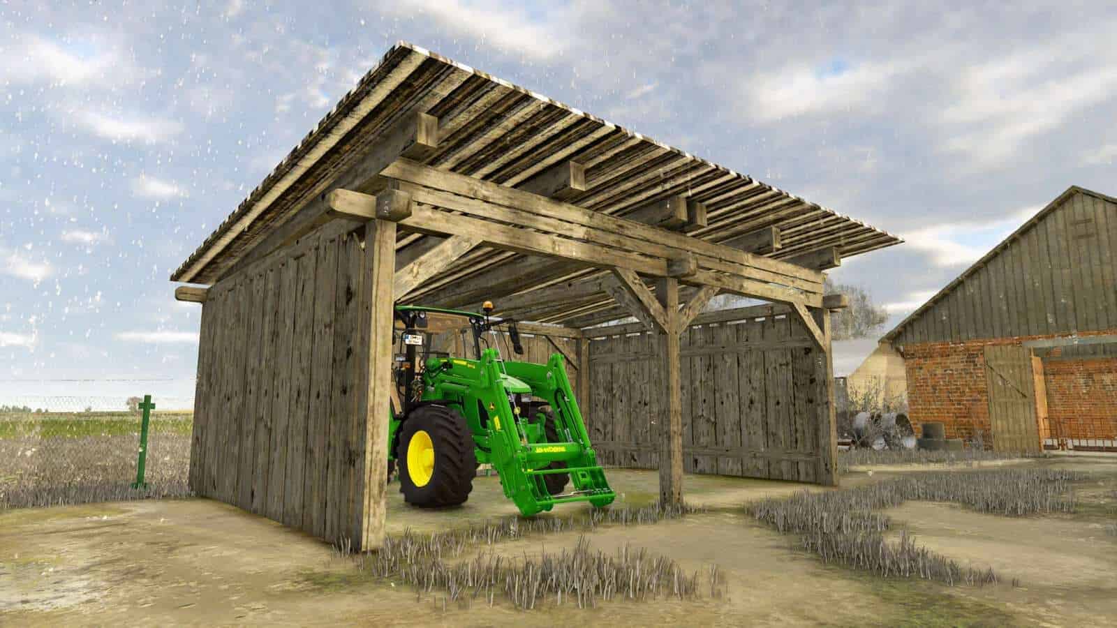 A simple wooden shed, ideal for storing equipment, pallets, or other items. Sturdy construction and perfect for any farm.