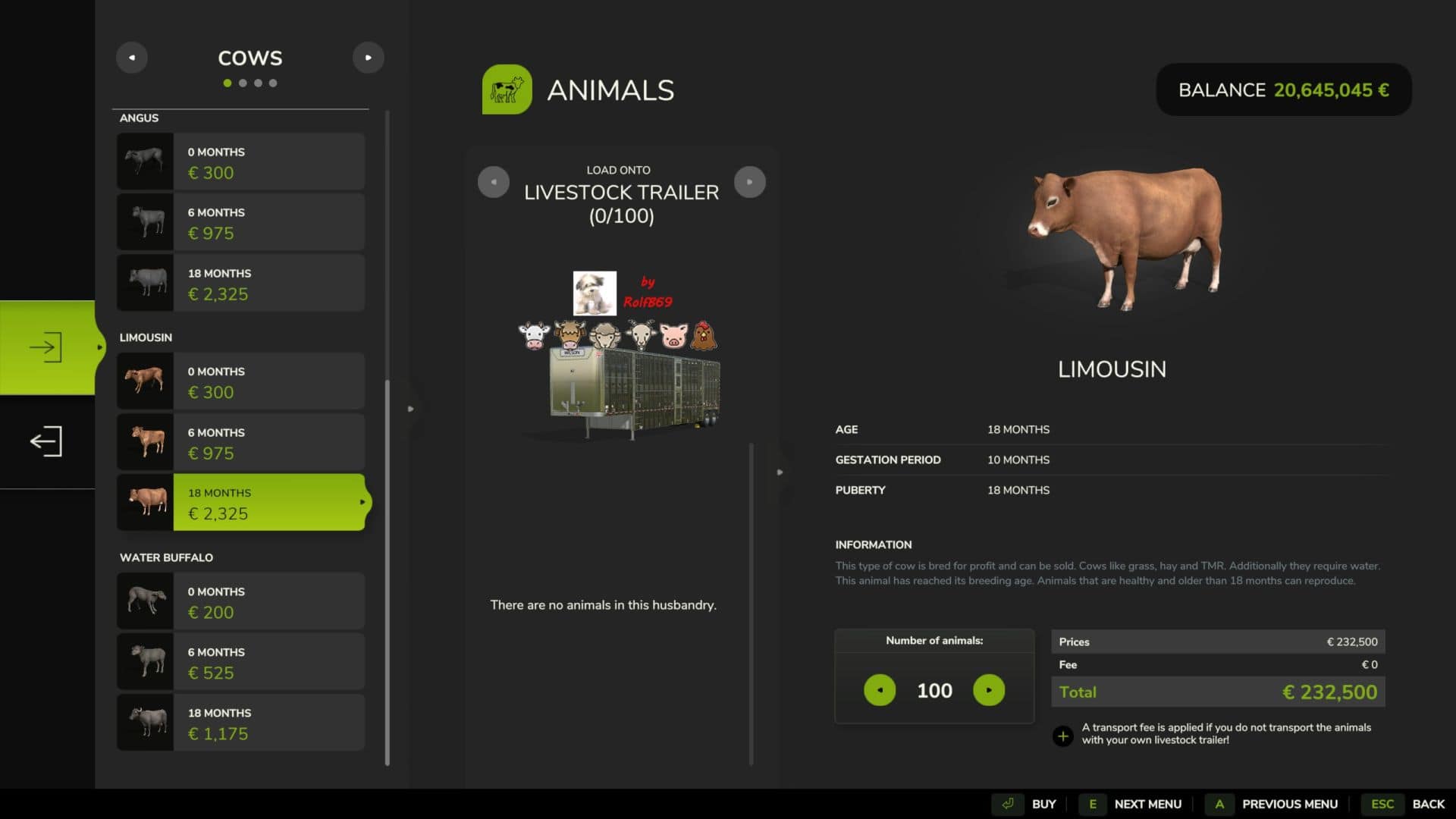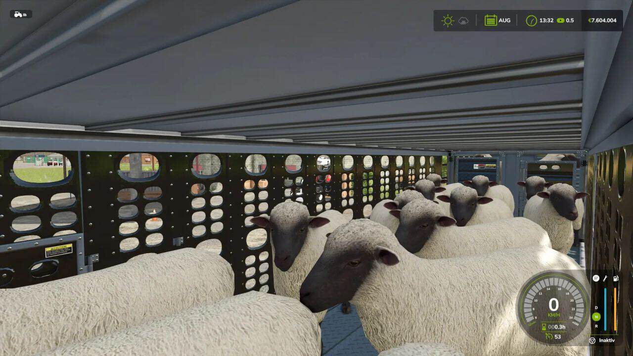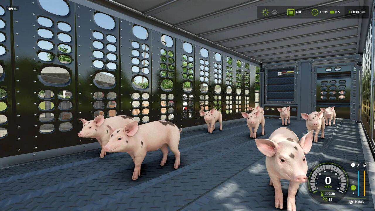 This unrealistic livestock trailer can be used for 100 cows, 250 pigs, 400 sheep, 400 goats or 1000 chickens. There is also a choice of colors for the chassis and rims.